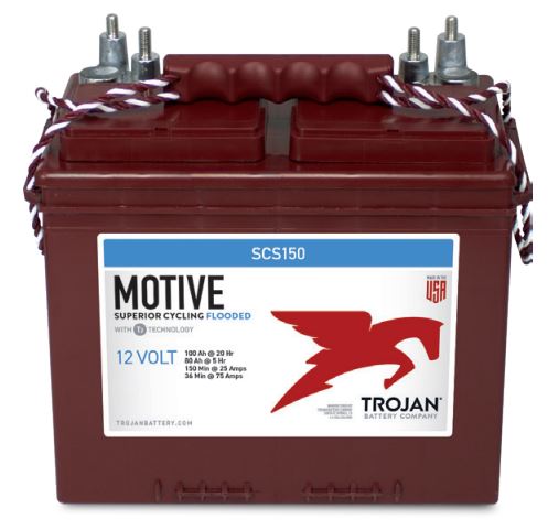 The Trojan SCS150 battery is a 12-volt deep-cycle flooded lead-acid battery built to provide reliable power in marine, RV, and heavy-duty applications. With a 100Ah capacity, it delivers steady energy for equipment that requires frequent deep-cycle use.
