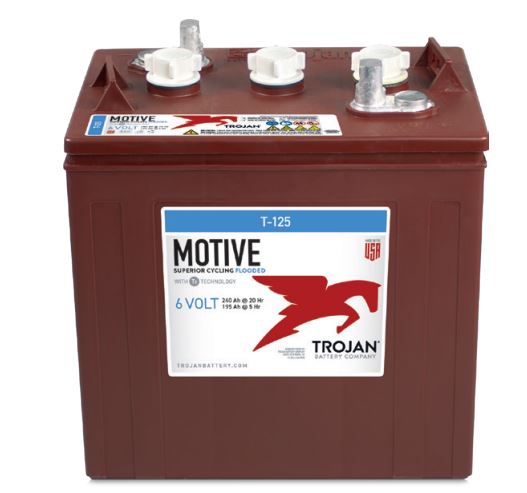 The Trojan T-125 Deep Cycle Battery provides dependable power for applications that require longer run times and consistent energy output. This 6-volt flooded lead-acid battery supports repeated deep discharges while maintaining stable performance.